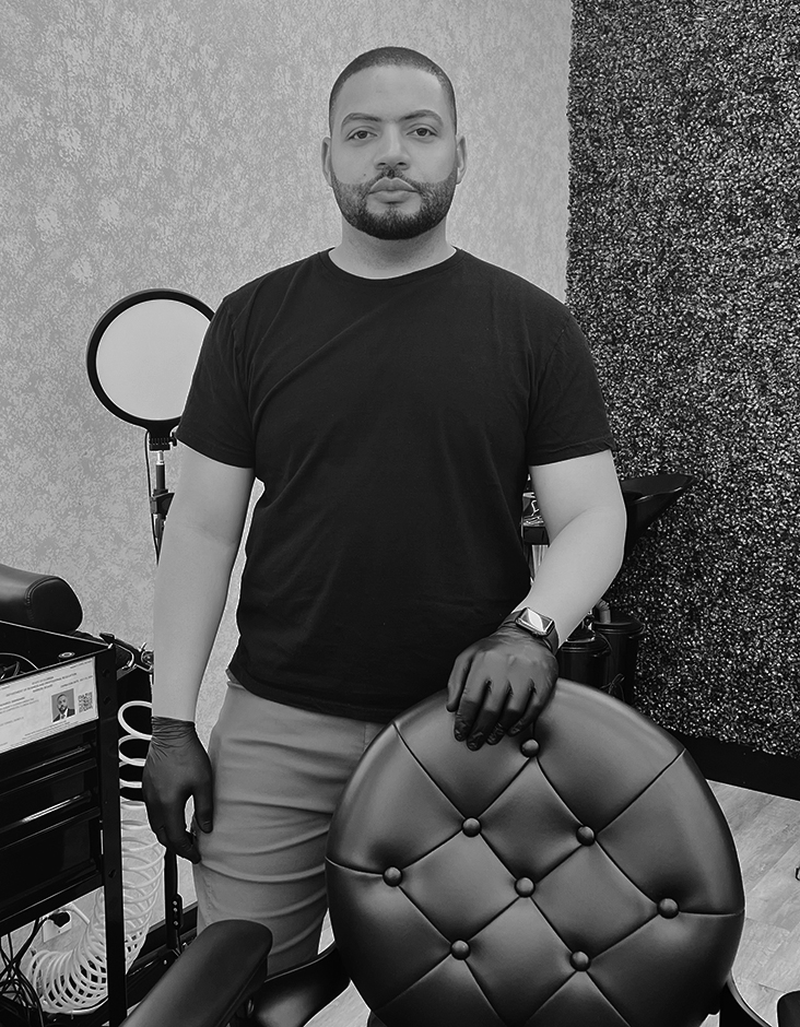 Explore our expert barber, a star with years of mastery in exact hair crafting and micro-pigmentation. Book now below.